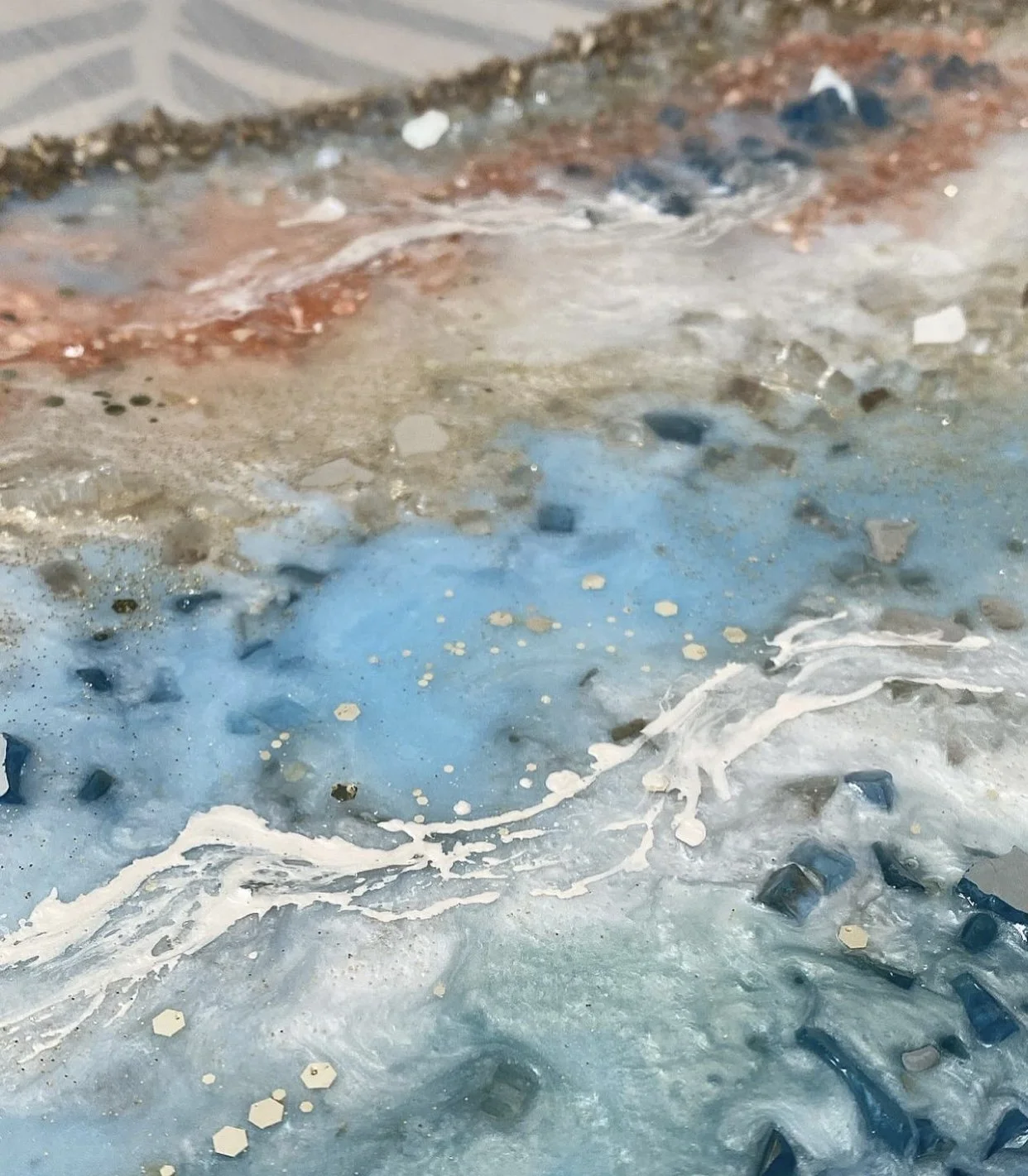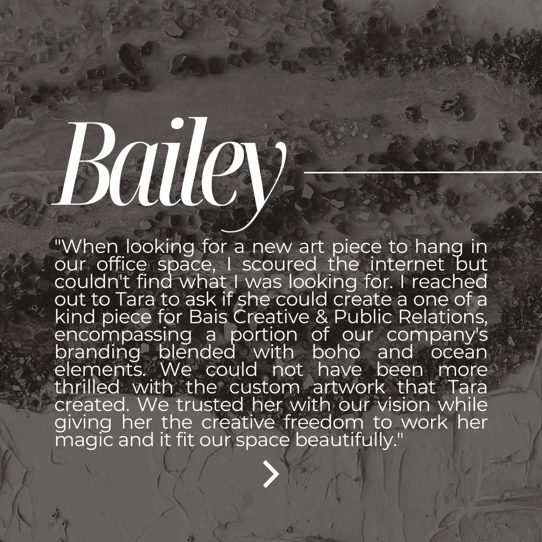 Bailey, owner of Bais Public Relations, came to me looking for a one of a kind piece to pull her office space together. The desired look was a beachy & unique vibe, and of course something to match the brand colors.
